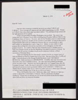 Letter to C-SPAN, 1999-03-24; 64477 Encloses information about David Rice Atchison and asks if a small segment can be squeezed into the American Presidents series. -