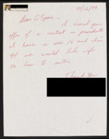Letter to C-SPAN, 1999-10-19; 92102 Asks for the cost of the Presidential Fact Cards. -