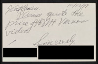 Letter to C-SPAN, 1999-10-12; 02072 Asks for the price of the Mount Vernon video. -