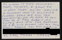 Letter to C-SPAN, 1999-10-10; 79905 Asks for information on the American Presidents series contest. -