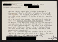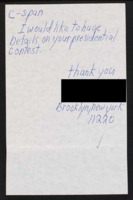 Letter to C-SPAN, n.d.; 83002 Asks for advice on a potential entry for the American Presidents contest. -