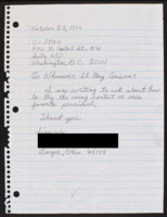 Letter to C-SPAN, n.d.; 97838 Talks about introduction to C-SPAN and Congressional programming, then asks for information on the American Presidents series contest. -