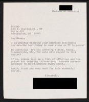 Letter to C-SPAN, n.d.; 66505 Asks if the American Presidents videos, books, or transcripts are for sale and requests prices. -