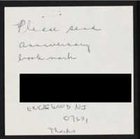 Letter to C-SPAN, 1999-04-05; 07631 Requests anniversary bookmarks to send to two locations. -