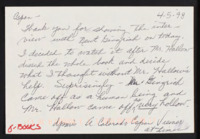 Letter to C-SPAN, 1998-04-20; 02139 Thanks C-SPAN for "About Books" and Booknotes, but expresses concern at some of the camerawork. -