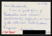 Letter to C-SPAN, 1996-12-02 Reflects on their favorite moments from Booknotes. -