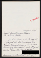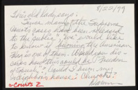Letter to C-SPAN, 1999-08-22; 67502 Desires to know if the Supreme Court case regarding flag-burning is available and disagrees that flag-burning is freedom of speech. -