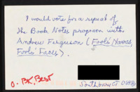 Letter to C-SPAN, 1996-12-05; 06777 States they would enjoy a rerun of the Booknotes program with Andrew Ferguson. -