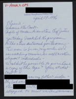 Letter to C-SPAN, 1996-04-29; 01004 Asks for a copy of a tape with Harlan Fiske Stone because they are related. -