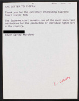 Letter to C-SPAN, 1998-02-16 Thanks C-SPAN for their coverage of the court and asks a question. -