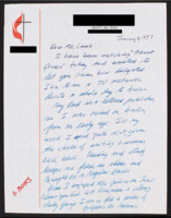 Letter to C-SPAN, 1997-01-27; 77639 Thanks C-SPAN for "About Books" and asks that it be replayed on C-SPAN 1, then recommends a guest for Booknotes. -