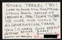 Letter to C-SPAN, n.d.; 91356 Applauds "About Books." -