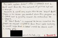 Letter to C-SPAN, 1997-10-10; 76308 Resents that "About Books" is only featured on C-SPAN 2. -
