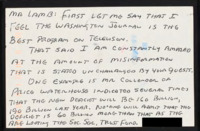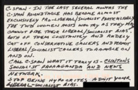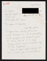 Letter to C-SPAN, n.d.; 86444 Dislikes conservative callers but enjoys many other aspects of C-SPAN.
