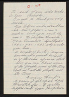 Letter to C-SPAN, n.d. Thanks C-SPAN for helping them understand politics more and suggests following up on certain topics discussed in Congress. -