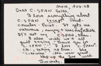 Letter to C-SPAN, 1995-08-30; 76107 Describes the one thing they don't like about C-SPAN. -