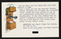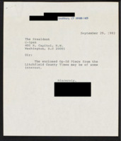 Says they used to support Ross Perot and believes that the country is in the "end times." Attached are newsletters arguing that taxation is theft and that diet soda is dangerous.