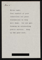 States that C-SPAN is dedicating too much time to the "House 'Bank'" issue and that Rep. H. Gonzalez should be invited on the show to discuss Reagan/Bush, Iran-Contra affair, and money laundering.