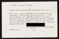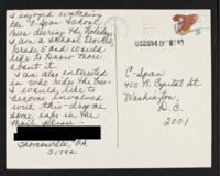 Appreciates the C-SPAN network but notices many people calling-in have an agenda. They recommend including more information of the callers like party affiliation, interest groups, and location, to improve credibility.