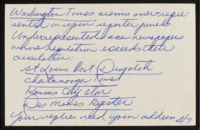 Expresses being struck by lack of questions regarding a subpoena to figure out where Congressmen send their checks; speculates on a hypothetical split Congress with an Independent Party president.
