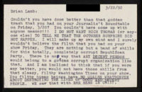States that C-SPAN should advertise the network's contact address, states that intellectuals are deceptive, and accuses Democrats of pretending to be ex-Bush supporters; encloses a letter posing questions about the wisdom of Democratic policies.