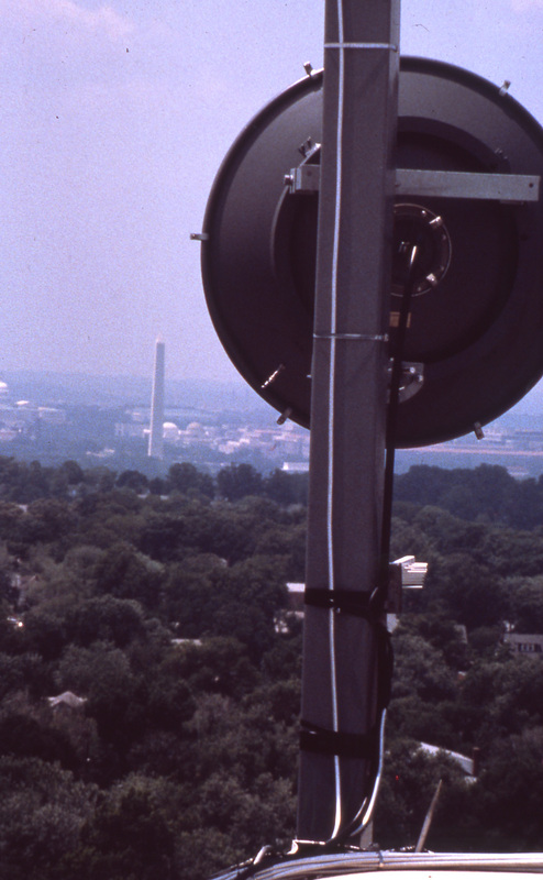 C-SPAN's microwave receive and transmission equipment sit on the rooftop at Tower Villas in Arlington, Virginia as part of positioning the equipment.