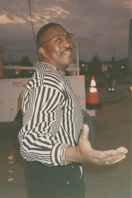 A person poses outdoors near some equipment. This photograph was taken as part of filming C-SPAN's Lincoln-Douglas Debates series in Alton, Illinois.