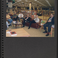 Scrapbook page with photograph of people seated in bookstore