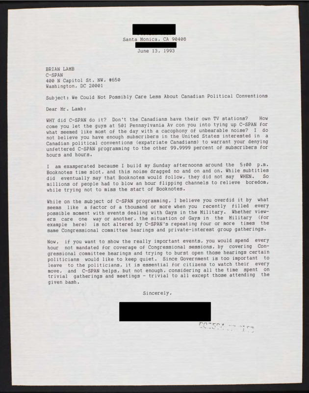 Expresses discontent with coverage of Canadian politics and with oversaturated coverage of issue of homosexuals in the military.