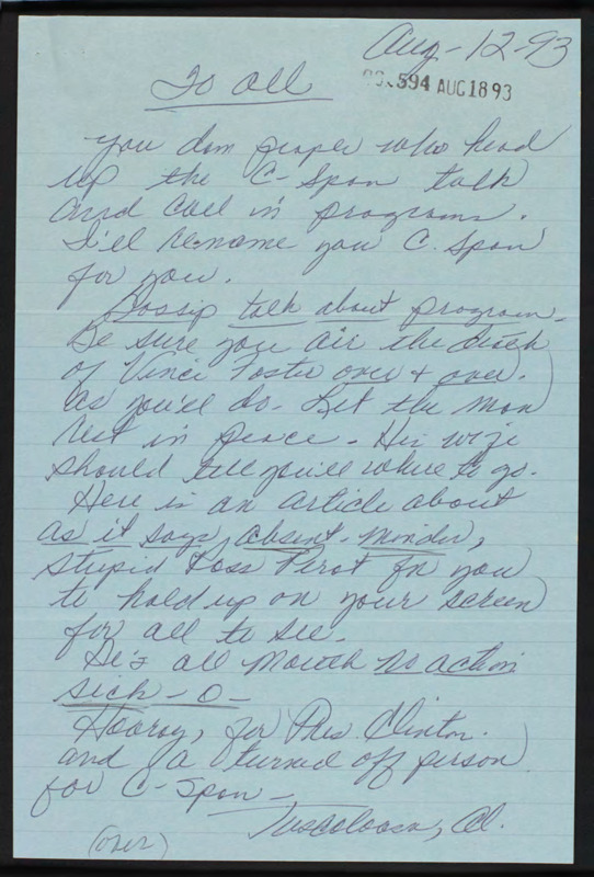 Letter to C-SPAN, 1993-08-12