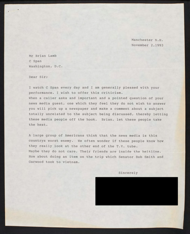 Letter to C-SPAN, 1993-11-02; 03102