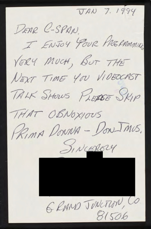 Letter to C-SPAN, 1994-01-07; 81506