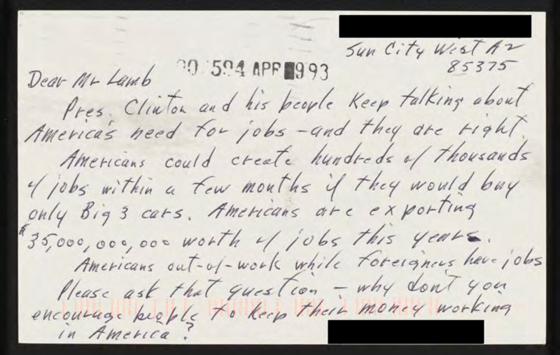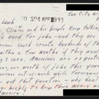 Discusses job creation and unemployment and the need to not have foreigners taking American jobs.