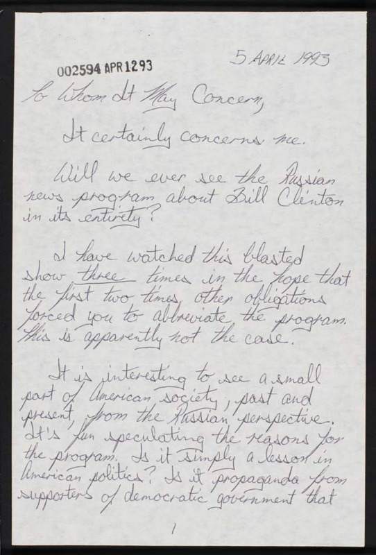 Letter to C-SPAN, 1993-04-05; 77954