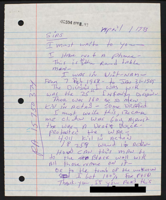 Letter to C-SPAN, 1993-04-01; 40310