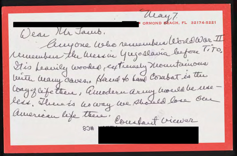Explains history of Yugoslavia before Tito and why Americans shouldn't go there.
