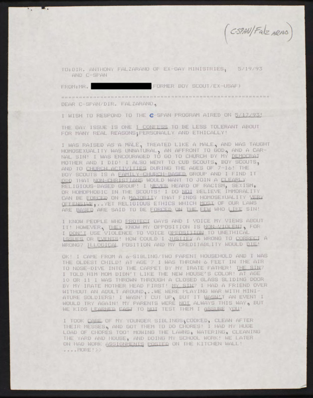 Letter to C-SPAN, 1993-05-19