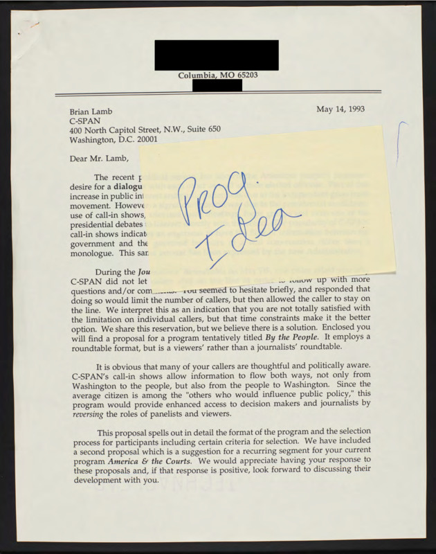 Letter to C-SPAN, 1993-05-14; 65203