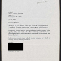 Letter to C-SPAN, 1993-07-12; 75081