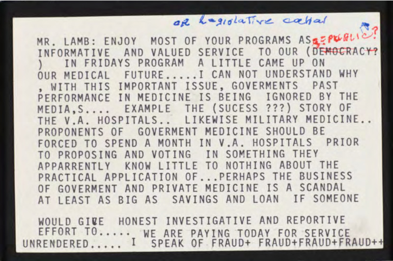 Letter to C-SPAN, 1993-09-10; 35810
