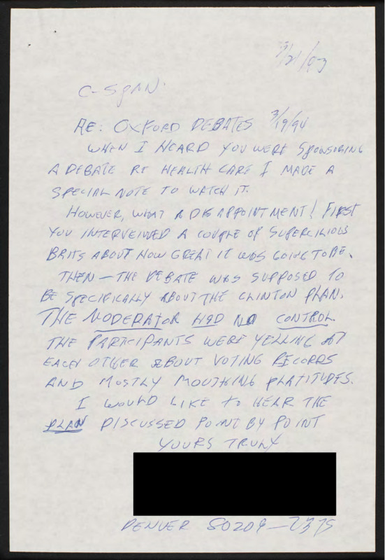 Complains the moderator had no control over a debate about health care and the participants were off-topic.