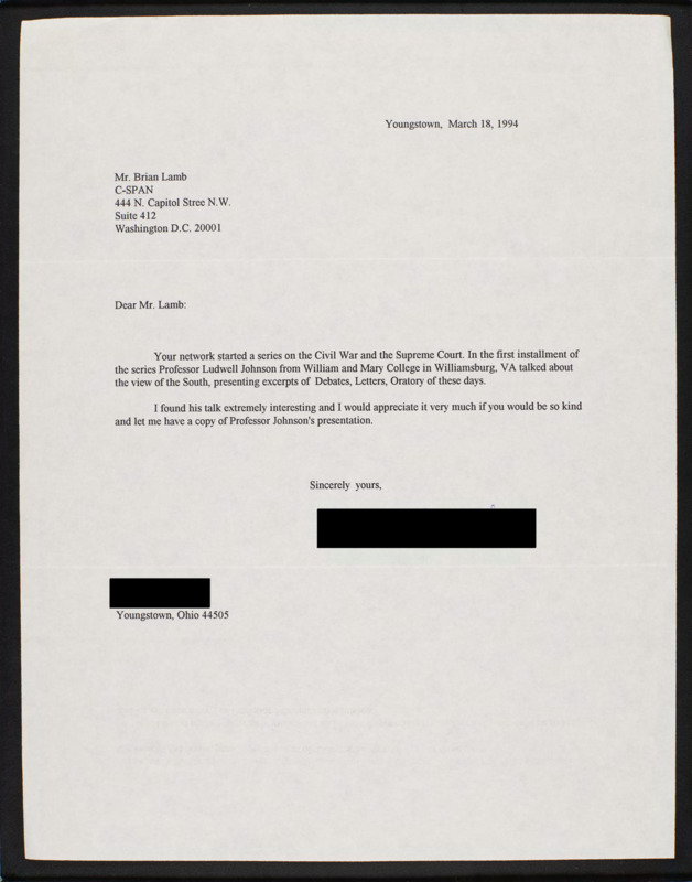 Letter to C-SPAN, 1994-03-18; 44505