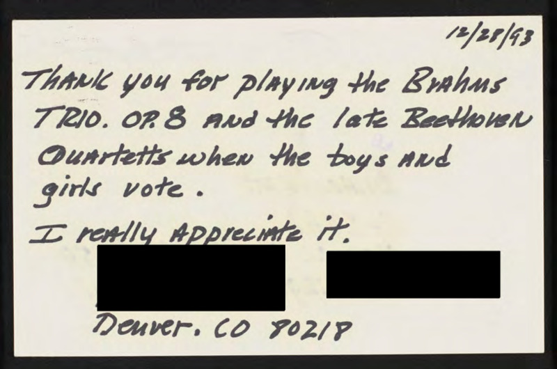 Thanks the network for praying the Brahms trio and Beethoven's quartets.