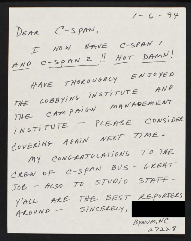 Letter to C-SPAN, 1994-01-06; 27228