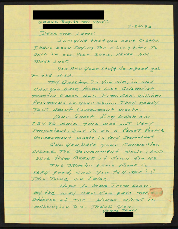 Letter to C-SPAN, 1992-07-24; 49546