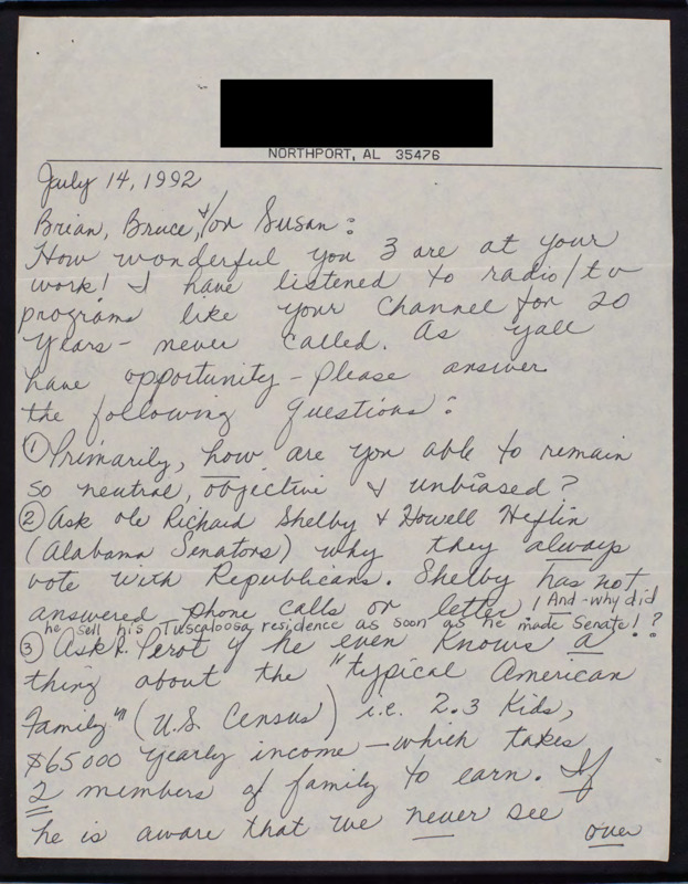 Expresses appreciation for C-SPAN staff, discusses Alabama politics, Perot's flaws, and problems with education/how presidential candidates will address them.