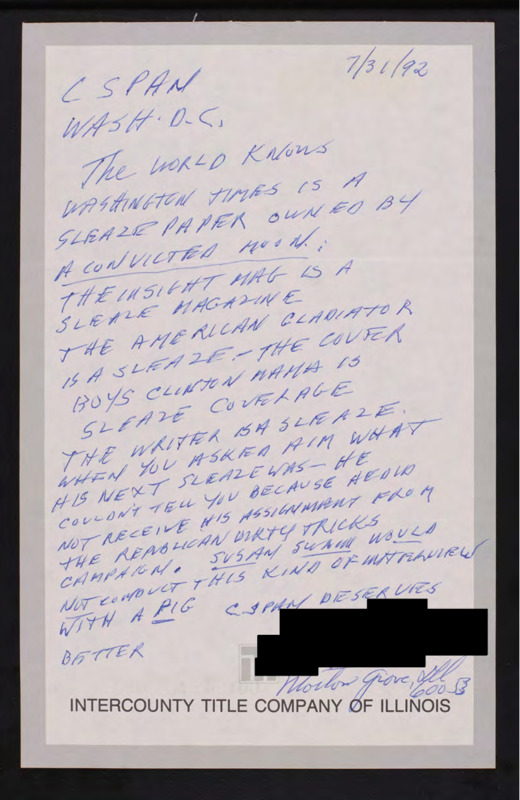 Letter to C-SPAN, 1992-07-31; 60053
