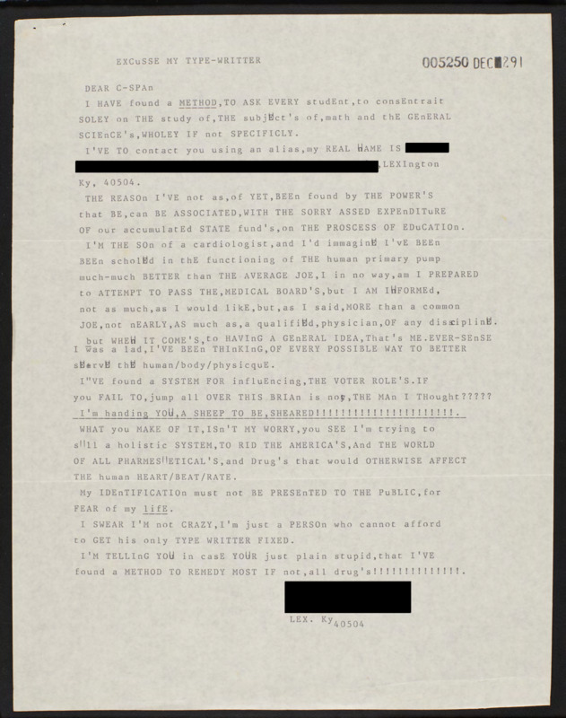 Letter to C-SPAN, 1991-11-26; 40504