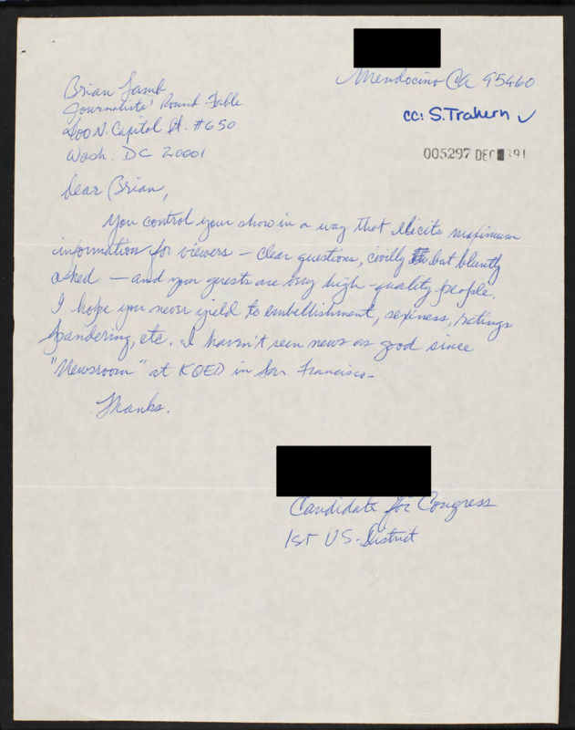 - Letter to C-SPAN, 1991-11-26; 95460