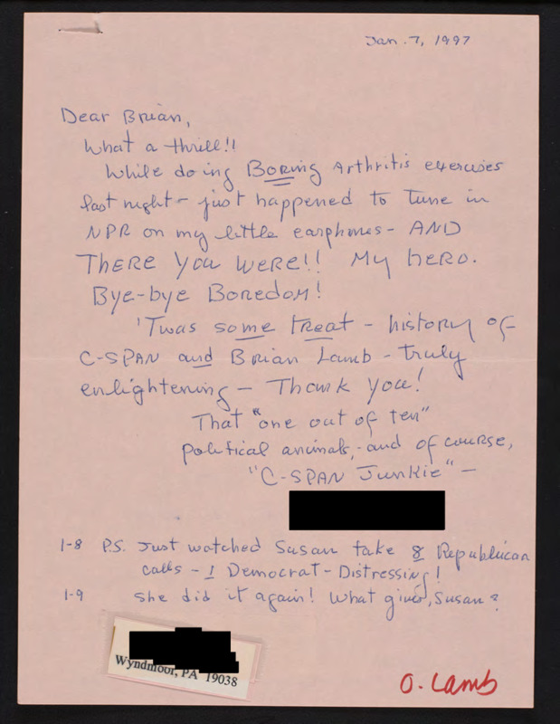 Letter to C-SPAN, 1997-01-07; 19038
